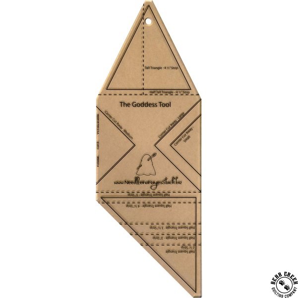 Quickly and easily create corner cut aways, half square triangles, tall triangles and half tall triangles using 5", 4 1/2" 3 1/2", 3" and 2 1/2" fabric strips.