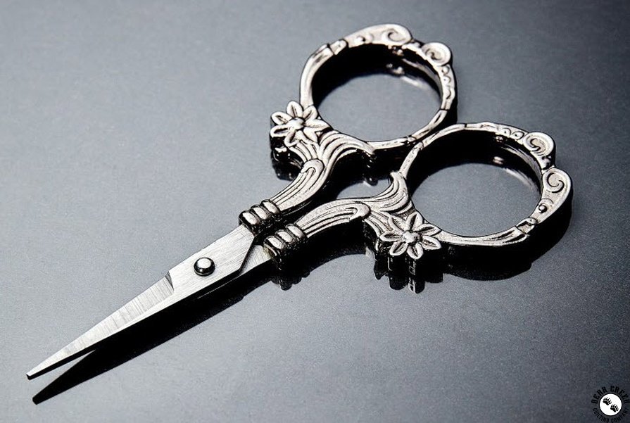 Hemline Embroidery ScissorsEmbroidery scissors with elegant floral and scroll motif on gunmetal black handles. Features high quality steel blades with a sharp and fine tip for precision cutting.