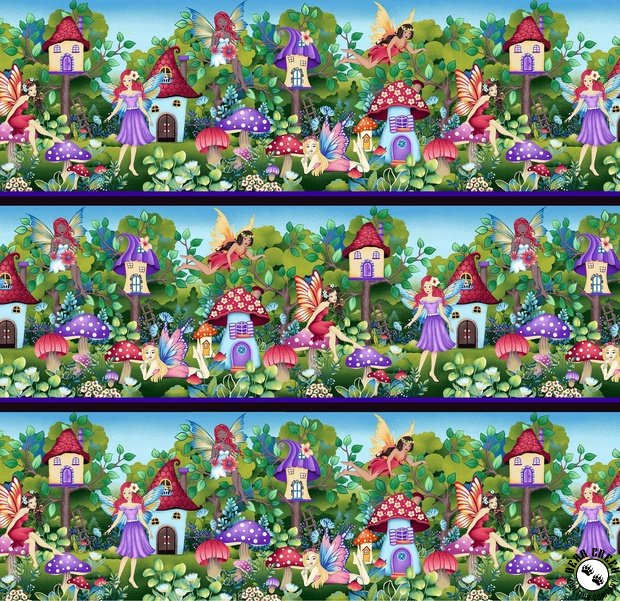 Take a magical stroll Down the Fairy Path,  where a whimsical village awaits!  Nestled among flowers and tall grasses, tiny fairy homes crafted from mushroom tops, blossoms, and charming hats dot the landscape.  Each fairy is delightfully unique, with one-of-a-kind wings and a love for gathering flowers to adorn their homes and create enchanting remedies.  Keep your eyes open—you never know what wonders lie hidden beneath the petals.  Start your next whimsical quilt with the enchanting blocks in this delightful collection.