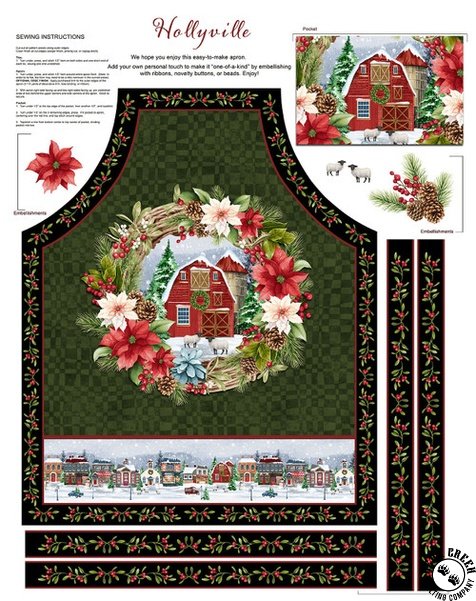 Hollyville Manor  is filled with tons charming shops. From a quaint bakery whose windows are always filled with tempting sweets, to a book store with more books than you have time to read. The toy shop will fill your mind with all the best gadgets you can find. Stop and smell the flowers at the florist as you make a list of all the lavish gifts you will buy. Perhaps the best gift is a handmade apron made from the panel or a quilt made with the blocks. You are sure to get affection a plenty gifting items made from Hollyville Manor.