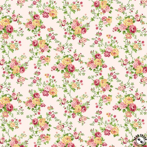 This new collection is calm, peaceful and tranquil. Mary Jane's collection, Serene Garden, reminds us of a leisurely summer stroll through lush gardens. Surround yourself with relaxed and soothing feelings. Luxurious roses appear in the main floral with glorious shades of aqua, pink and cream. The coordinating small and medium prints in the collection, lovely trailing rose vines, tiny rosebuds, rose covered trellis plaid, medium floral toss and a tiny floral, all come together to create this fabric collection.