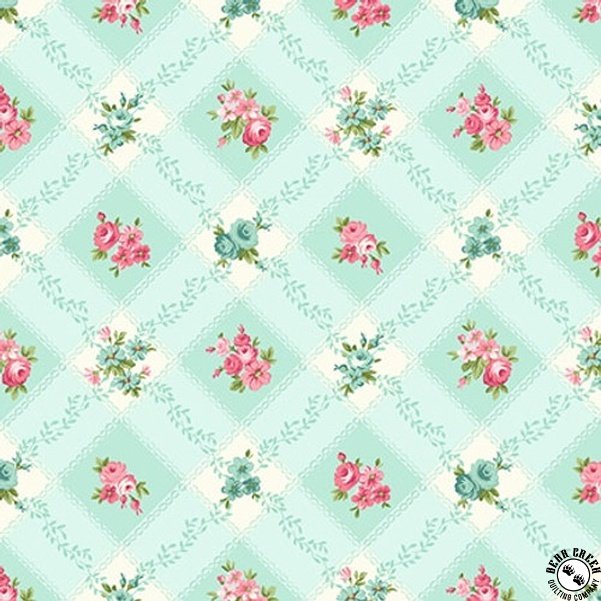 This new collection is calm, peaceful and tranquil. Mary Jane's collection, Serene Garden, reminds us of a leisurely summer stroll through lush gardens. Surround yourself with relaxed and soothing feelings. Luxurious roses appear in the main floral with glorious shades of aqua, pink and cream. The coordinating small and medium prints in the collection, lovely trailing rose vines, tiny rosebuds, rose covered trellis plaid, medium floral toss and a tiny floral, all come together to create this fabric collection.