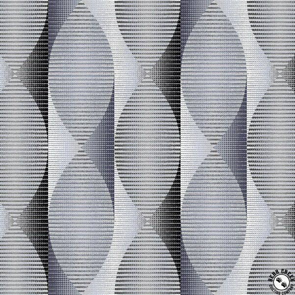 Twisted Ribbons  is a great choice for backing quilts!  This fabric print design has a mid-century modern feel that will easily compliment an array of projects.  It is available in six different colorways.  There is a brown and a grey colorway both of which are a great neutral that will pair well with many other colors.  The purple colorway has an almost electric feel to it.  There are also two blue colorways that are sure to compliment many beach and winter themed quilts.  This retro looking wide backing fabric is sure to complete any masterpiece you create!
