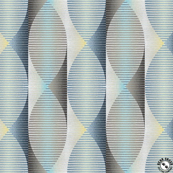 Twisted Ribbons  is a great choice for backing quilts!  This fabric print design has a mid-century modern feel that will easily compliment an array of projects.  It is available in six different colorways.  There is a brown and a grey colorway both of which are a great neutral that will pair well with many other colors.  The purple colorway has an almost electric feel to it.  There are also two blue colorways that are sure to compliment many beach and winter themed quilts.  This retro looking wide backing fabric is sure to complete any masterpiece you create!