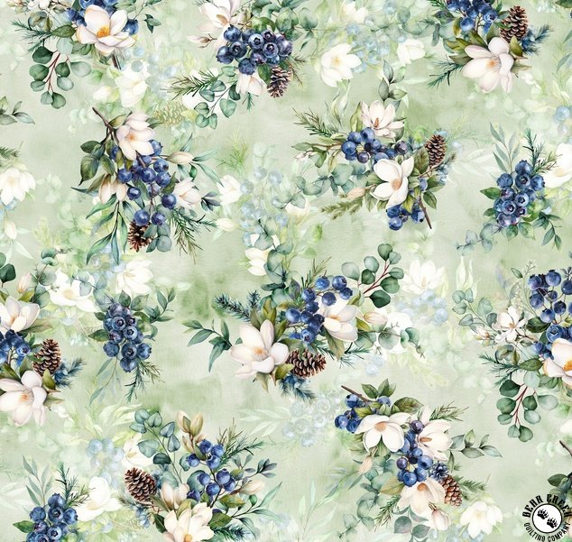 Hoffman Fabrics Forest Fawn Berries and Pinecones Eucalyptus