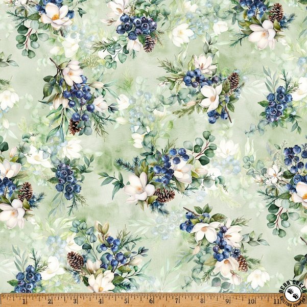 Hoffman Fabrics Forest Fawn Berries and Pinecones Eucalyptus