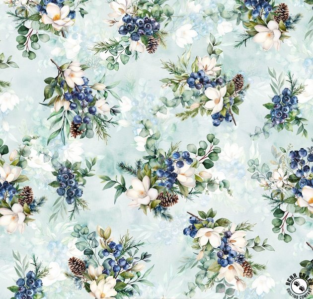 Hoffman Fabrics Forest Fawn Berries and Pinecones Sky