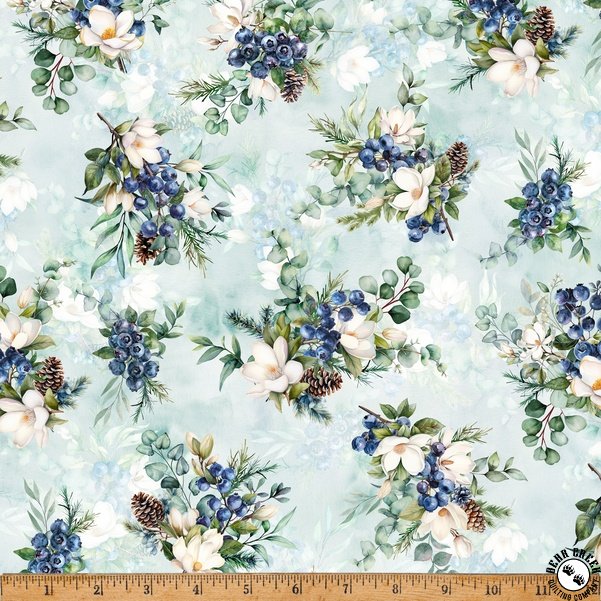 Hoffman Fabrics Forest Fawn Berries and Pinecones Sky