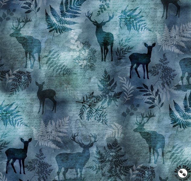 Hoffman Fabrics Forest Fawn Ferns and Deer Dusty Blue