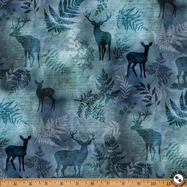 Hoffman Fabrics Forest Fawn Ferns and Deer Dusty Blue