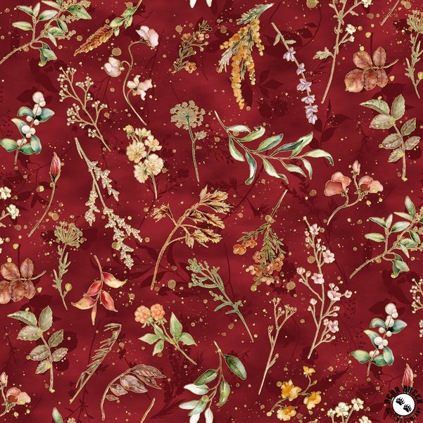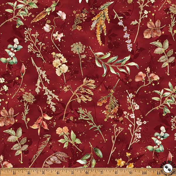 Hoffman Fabrics Harvest Bouquet Tossed Ferns and Flowers Maroon