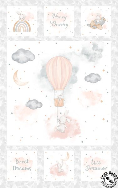 Honey Bunny offers a soothing palette designed for all the wee dreamers, with gentle greys, soft peaches, and delicate whites. Playful scenes of rainbows and hot air balloons capture the magic of childhood adventures, while floppy ears and fluffy clouds add a whimsical charm. Perfect for stitching sweet nursery quilts and heartfelt baby gifts, Honey Bunny invites you to create cozy, handmade treasures for the littlest ones in your life.