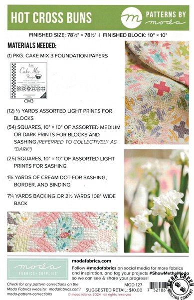 Hot Cross Buns Quilt Pattern View Larger Image Price: SALE $7.99 3 item(s) available. Item # PTN-MOD127 | Reg. $9.99 Tweet Pin It Hot Cross Buns Quilt PatternFeaturing the Wild Orchid fabric collection by Moda. Pattern and instructions; fabric not included Finished size is 78 1/2 inches by 78 1/2 inches Designed by and Published by Patterns By Moda Copyright 2025 Related Products Moda Wild Orchid Bewitching Shades Lady Slipper Item # 2776-14 | Reg. $12.49 SALE from $9.99 Moda Wild Orchid Bewitching Shades Moth Item # 2776-16 | Reg. $12.49 SALE from $9.99 Moda Wild Orchid Bewitching Shades Petal Item # 2776-15 | Reg. $12.49 SALE from $9.99 Moda Wild Orchid Fern Fronds Lady Slipper Item # 2773-14 | Reg. $12.49 SALE from $9.99 Moda Wild Orchid Fern Fronds Tree Bark Item # 2773-13 | Reg. $12.49 SALE from $9.99 Moda Wild Orchid Fern Fronds Vanilla Bean Item # 2773-11 | Reg. $12.49 SALE from $9.99 Moda Wild Orchid Floral Petal Item # 2770-15 | Reg. $12.49 SALE from $9.99 Moda Wild Orchid Fragrance Lady Slipper Item # 2775-24 | Reg. $12.49 SALE from $9.99 Moda Wild Orchid Fragrance Moth Item # 2775-26 | Reg. $12.49 SALE from $9.99 Moda Wild Orchid Fragrance Petal Item # 2775-25 | Reg. $12.49 SALE from $9.99 Moda Wild Orchid Misty Dream Earth Item # 2774-12 | Reg. $12.49 SALE from $9.99 Moda Wild Orchid Misty Dream Lady Slipper Item # 2774-14 | Reg. $12.49 SALE from $9.99 Moda Wild Orchid Misty Dream Petal Item # 2774-15 | Reg. $12.49 SALE from $9.99 Moda Wild Orchid Misty Dream Tree Bark Item # 2774-13 | Reg. $12.49 SALE from $9.99 Moda Wild Orchid Passionate Bloom Lady Slipper Item # 2771-14 | Reg. $12.49 SALE from $9.99 Moda Wild Orchid Passionate Bloom Tree Bark Item # 2771-13 | Reg. $12.49 SALE from $9.99 Moda Wild Orchid Passionate Bloom Vanilla Bean Item # 2771-11 | Reg. $12.49 SALE from $9.99 Moda Wild Orchid Tropical Vine Earth Item # 2772-12 | Reg. $12.49 SALE from $9.99 Moda Wild Orchid Tropical Vine Lady Slipper Item # 2772-14 | Reg. $12.49 SALE from $9.99 Moda Wild Orchid Tropical Vine Moth Item # 2772-16 | Reg. $12.49 SALE from $9.99 Moda Wild Orchid Tropical Vine Petal Vanilla Bean Item # 2772-21 | Reg. $12.49 SALE from $9.99 Moda Wild Orchid Tropical Vine Tree Bark Item # 2772-13 | Reg. $12.49 SALE from $9.99 Moda Wild Orchid Vanilla Bean Earth Item # 2777-12 | Reg. $12.49 SALE from $9.99 Moda Wild Orchid Vanilla Bean Earth/Vanilla Bean Item # 2777-11 | Reg. $12.49 SALE from $9.99 Moda Wild Orchid Vanilla Bean Moth/Vanilla Bean Item # 2777-22 | Reg. $12.49 SALE from $9.99 Wild Orchid Charm Pack by Moda Item # 2770PP | Reg. $12.99 SALE from $10.39 Wild Orchid Fat Quarter by Bundle Moda Item # 2770AB | Reg. $139.99 SALE from $111.99 Wild Orchid Jelly Roll by Moda Item # 2770JR | Reg. $49.99 SALE from $39.99 Wild Orchid Layer Cake by Moda Item # 2770LC | Reg. $49.99 SALE from $39.99