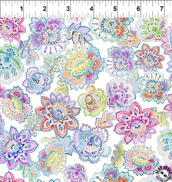 Step into a world of whimsical beauty with Daydreams!  This truly lovely collection of stylized florals is a feast for the eyes, blending soft, soothing tones with just the right touch of bold color to captivate your imagination.  Delicate hummingbirds and graceful butterflies flit effortlessly among the blooms, adding a magical charm to every print.  Perfect for quilts, home decor, or any creative project, Daydreams  invites you to create something as enchanting as the fabric itself.