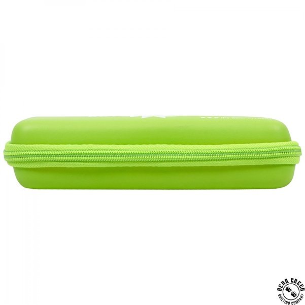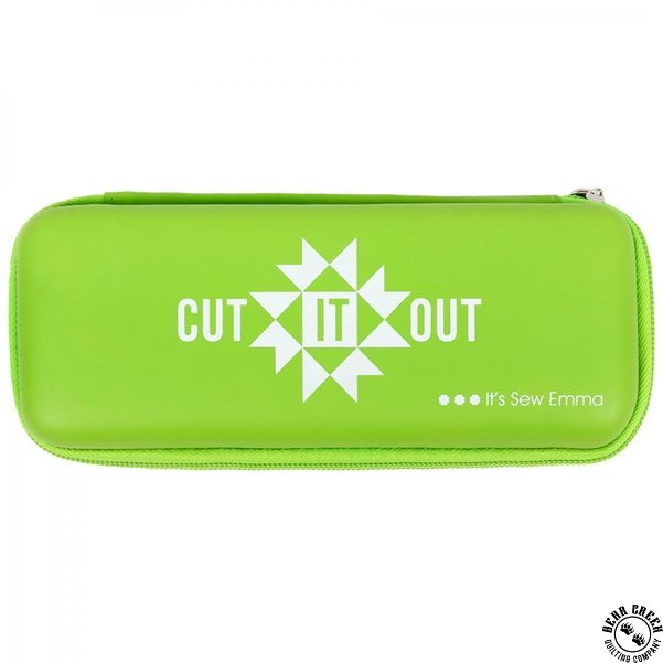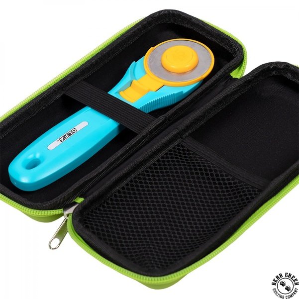 Sporting happy graphics any quilter can stand behind, it is fun and functional. Safely store your rotary cutters inside the elastic mesh band, while replacement blades, thread spools, seam rippers and small scissors can be tucked into the elastic mesh pocket. A sturdy zipper contains everything in a rigid, yet light case.