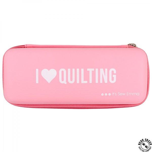 Sporting happy graphics any quilter can stand behind, it is fun and functional. Safely store your rotary cutters inside the elastic mesh band, while replacement blades, thread spools, seam rippers and small scissors can be tucked into the elastic mesh pocket. A sturdy zipper contains everything in a rigid, yet light case.