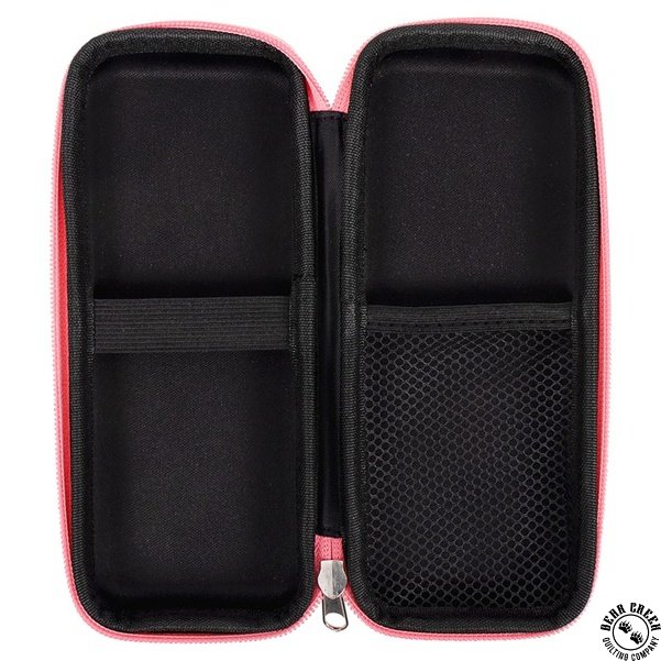Sporting happy graphics any quilter can stand behind, it is fun and functional.  Safely store your rotary cutters inside the elastic mesh band, while replacement blades, thread spools, seam rippers and small scissors can be tucked into the elastic mesh pocket.  A sturdy zipper contains everything in a rigid, yet light case.