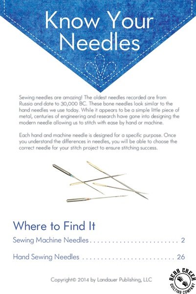 Pocket Size!Do you know your sewing needles? Know Your Needles is a complete, concise, and compact sewing needle resource for all your fabric creations! Answering many frequently asked questions about hand and machine needles, learn the characteristics of 30 common needles and which tasks they are designed to perform. From applique and stitching to binding and repairing, know which needle is right for the job, how they’re sized, what fabrics they’re for, and when to use them!