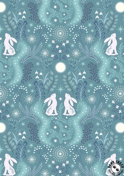 Lewis and Irene Fabrics A Winter's Moon Winter Hare Iced Aqua