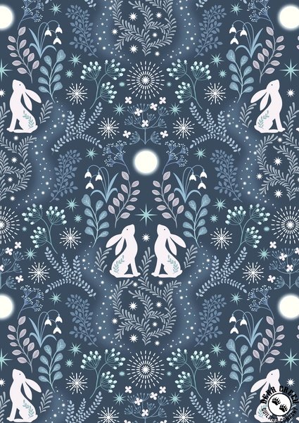Step into a frozen wonderland with A Winter’s Moon,  a magical collection from Lewis and Irene Fabrics.  Inspired by the ethereal glow of the moon on a crisp winter night, each design is enhanced with pearlescent accents that capture the sparkle of the season.  Frosted foliage, twinkling stars, and delicate pearl snowdrops shimmer with wintry charm, while majestic stags and curious hares bask in the moonlight beneath a glowing pearl sky.  Perfect for bringing the enchantment of winter into your sewing projects, this collection includes a stunning double-edge border and a large panel of seasonal squares—ideal for quilts, cushions, bags, or wherever your creativity leads.