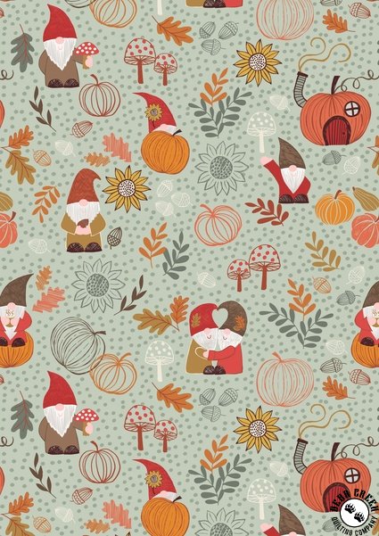 Lewis and Irene Fabrics Snuggle Up Season Flannel Autumn Gnomes Light Sage