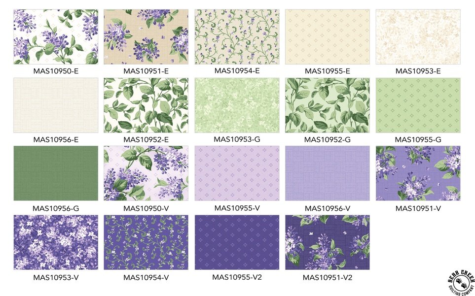 Lilac Lane  brings together the soft beauty of lilacs in gentle purples, lavenders, and delicate greens, evoking a sense of calm and renewal.  With traditional packed floral patterns and subtle basket weave textures, this collection captures the timeless charm of classic garden bouquets.  Perfect for creating fresh patchwork quilts, table runners, and other home accessories, Lilac Lane  brings a timeless elegance to your sewing projects.