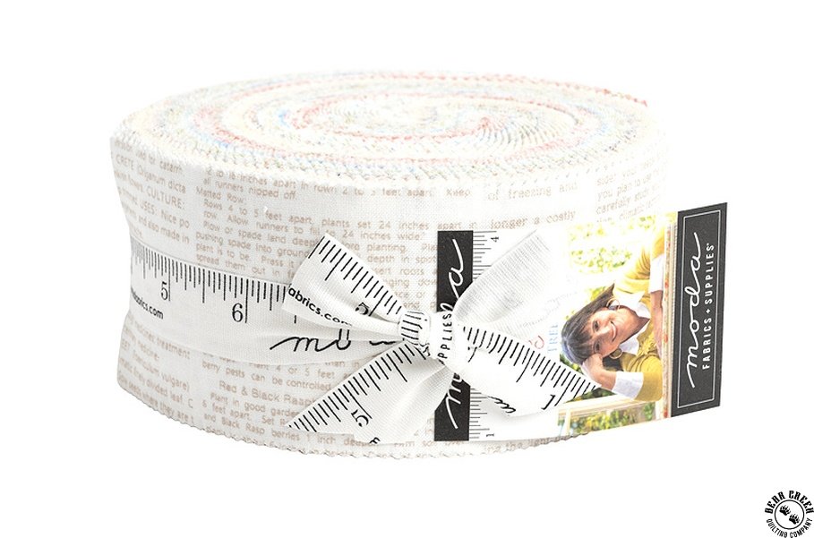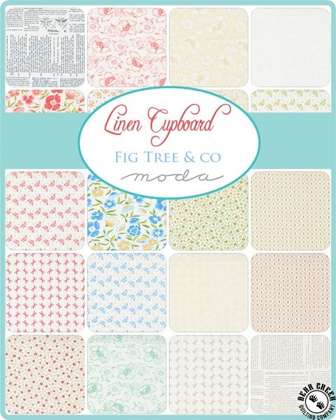 When I look at all of these creamy "low volume" prints together, I immediately imagine what it would be like to rummage around in my grandma's vintage linen cupboard or to small the clean laundry on the line in the backyard. Filled with delicate florals, geometric prints and small motifs, this collection just begs to be transformed into soft romantic quilt backgrounds or to be the star of the show in a soft "low volume" quilt. ~Joanna