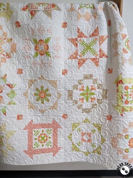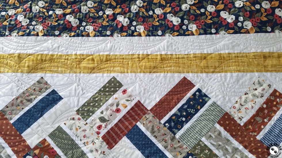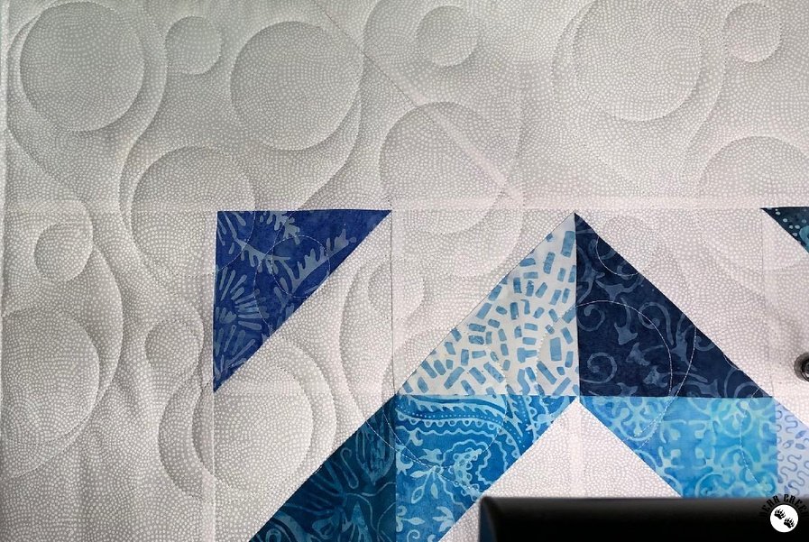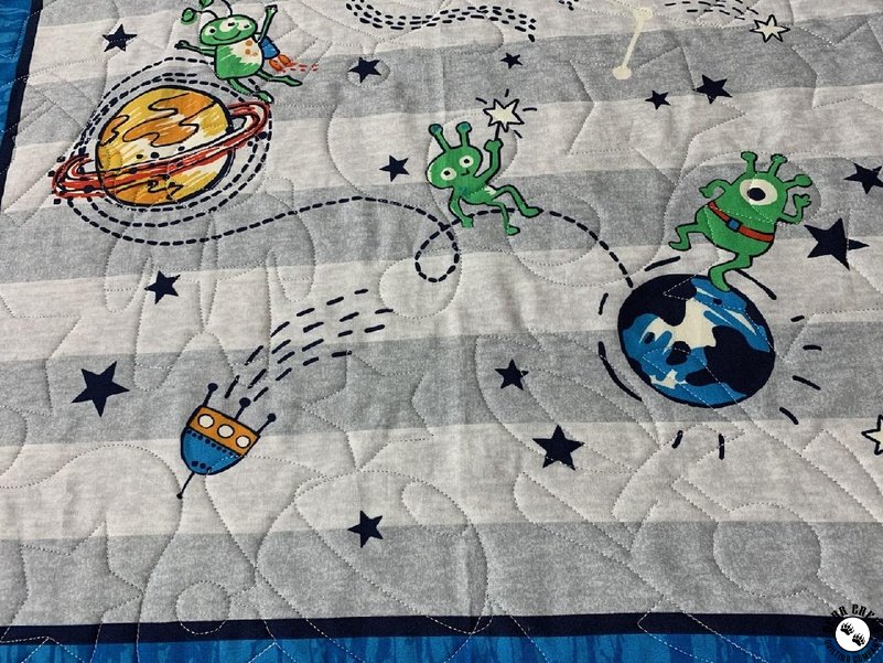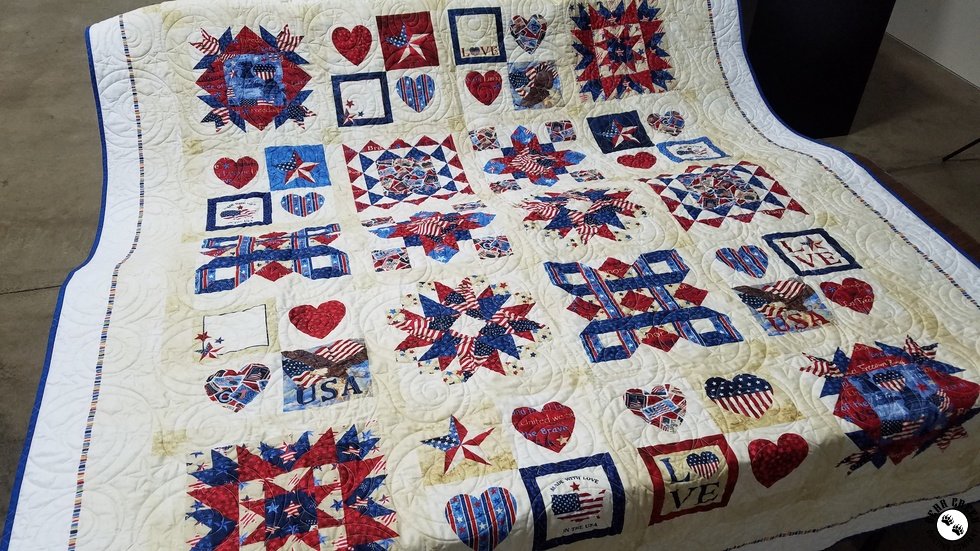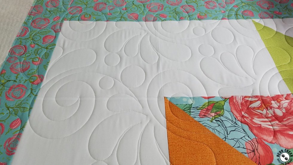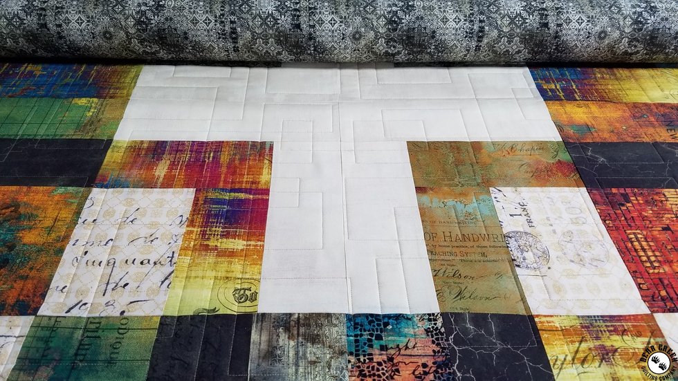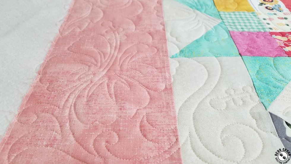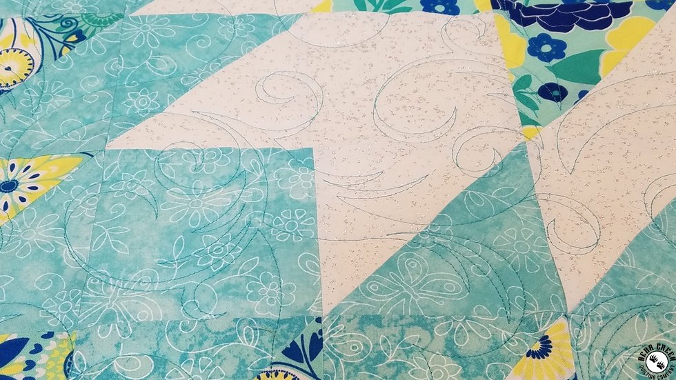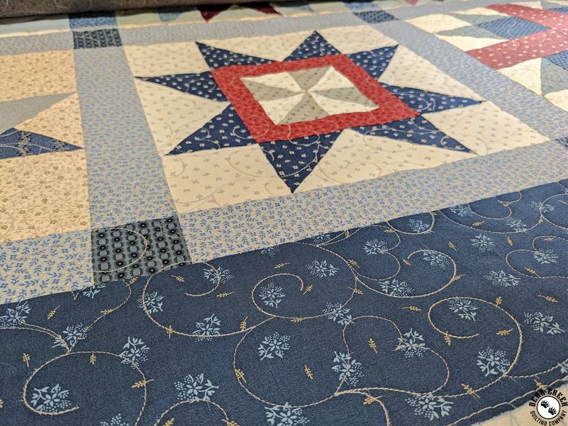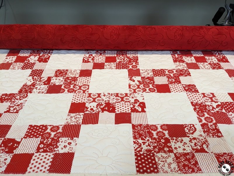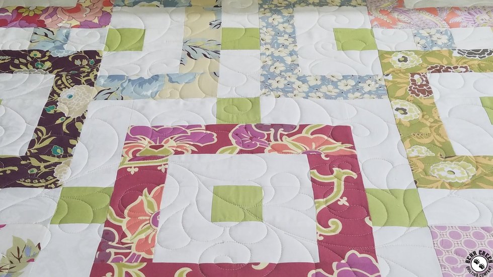 This type of service does not allow for stopping or quilting around certain blocks, fabrics, or images. We offer this quilting service as a way for you to get your quilt beautifully finished, without the struggles of machine quilting on your domestic home machine or having to crawl on the floor to baste your layers together.