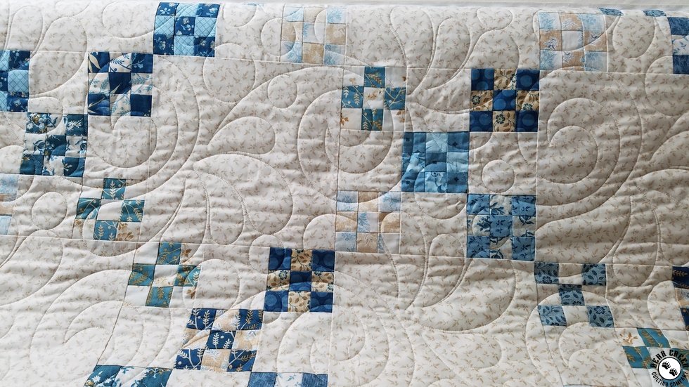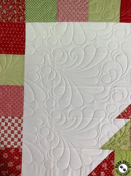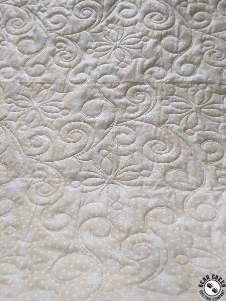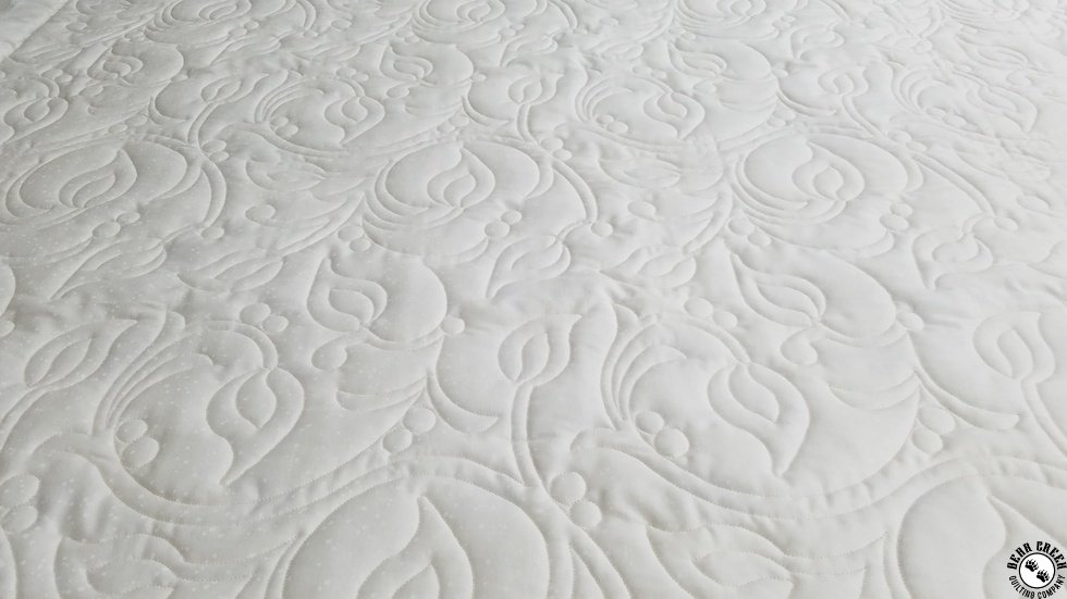We offer an "edge-to-edge" or "all-over" machine quilting service. The quilting design will start on one side of the quilt, quilting a repeat design across to the other side of the quilt. This will repeat in rows down the length of your quilt. Most quilting designs can be "nested" as to not actually see rows but a beautiful quilting design that stitches all the quilt layers together.