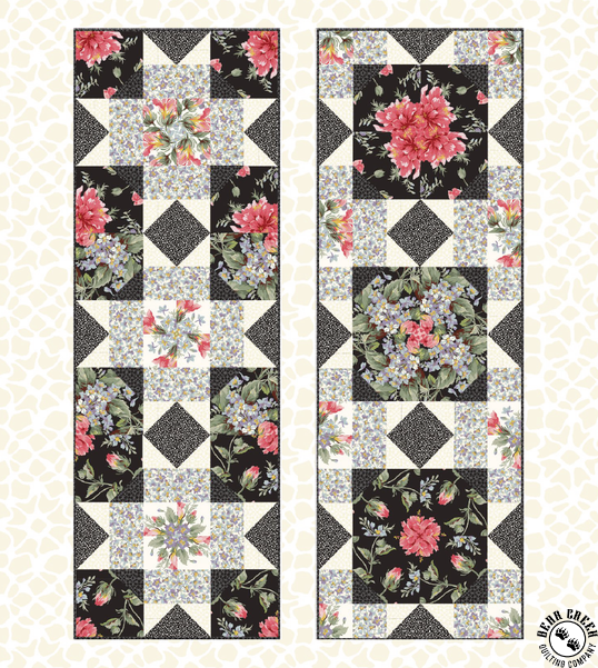 The free pattern is designed for fabric collections to help give you inspirational ideas on how to use that collection in a quilt, tote bag, table runners and more.