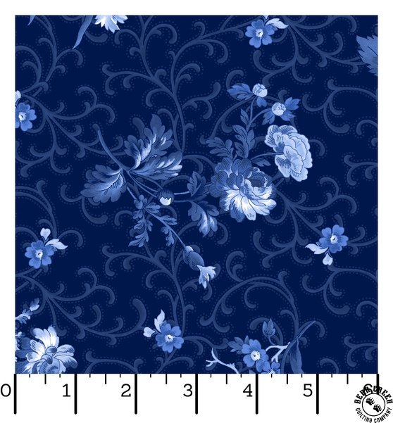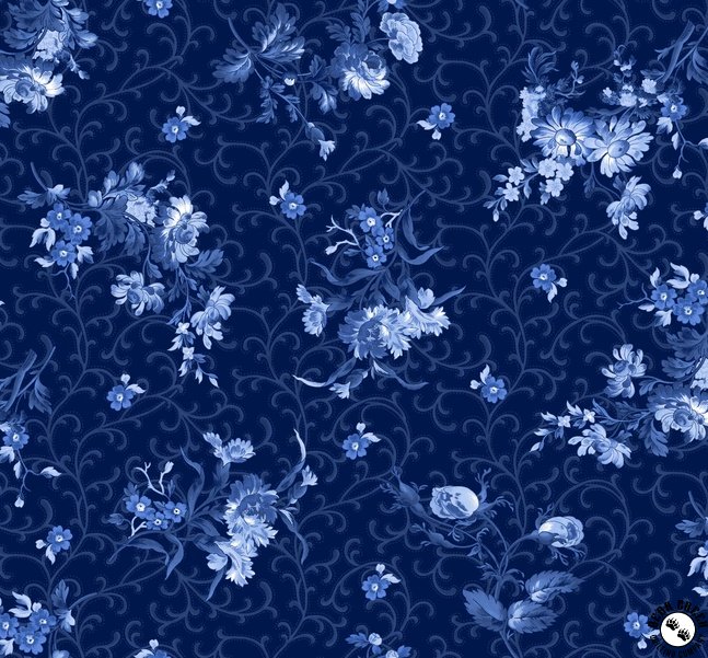 Maywood Studio Blue Belle Floral with Scroll Navy