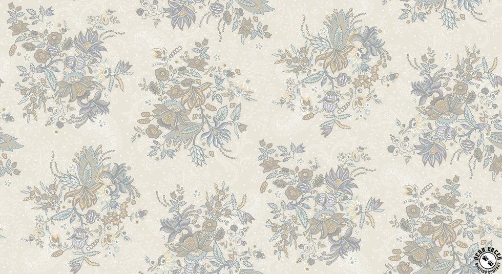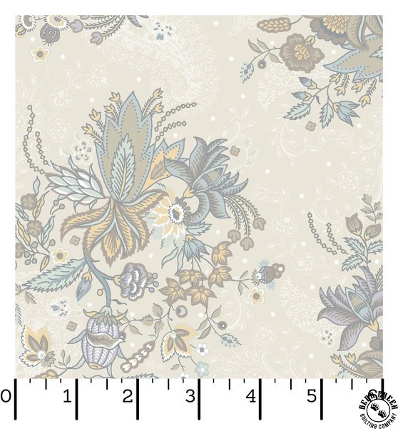 Daybreak  features intricate paisley patterns in a serene blend of soft cool grays and warm taupes, creating a delicate balance of warm and cool neutrals. The designs evoke the peaceful feeling of spending a quiet day in a shady spot with soft breezes and a good booklight, airy, and tranquil. The intricate patterns, combined with earthy soothing colors, bring a gentle elegance to any sewing project, whether for a lap quilt to relax under or a calming home accessory.