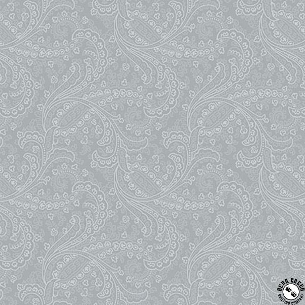 Daybreak  features intricate paisley patterns in a serene blend of soft cool grays and warm taupes, creating a delicate balance of warm and cool neutrals. The designs evoke the peaceful feeling of spending a quiet day in a shady spot with soft breezes and a good booklight, airy, and tranquil. The intricate patterns, combined with earthy soothing colors, bring a gentle elegance to any sewing project, whether for a lap quilt to relax under or a calming home accessory.