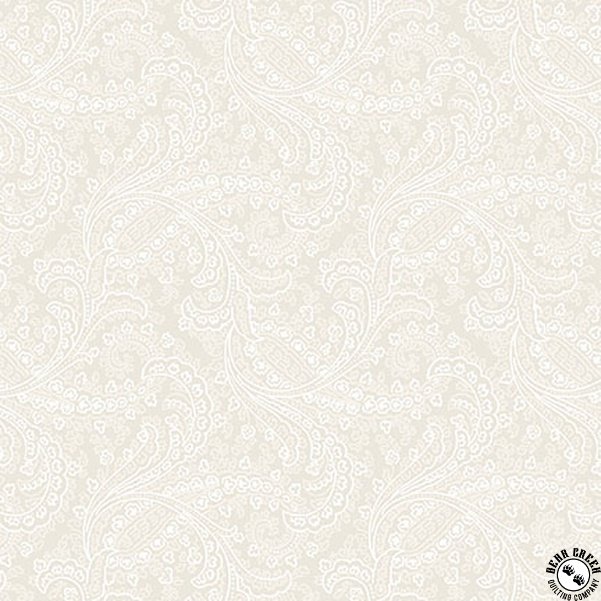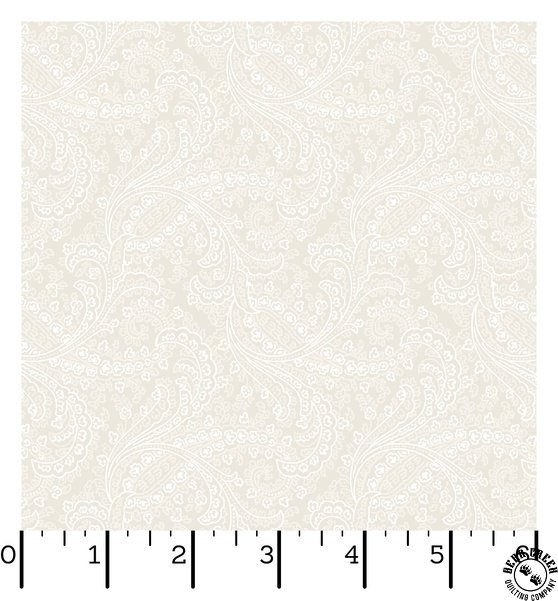 Daybreak  features intricate paisley patterns in a serene blend of soft cool grays and warm taupes, creating a delicate balance of warm and cool neutrals. The designs evoke the peaceful feeling of spending a quiet day in a shady spot with soft breezes and a good booklight, airy, and tranquil. The intricate patterns, combined with earthy soothing colors, bring a gentle elegance to any sewing project, whether for a lap quilt to relax under or a calming home accessory.