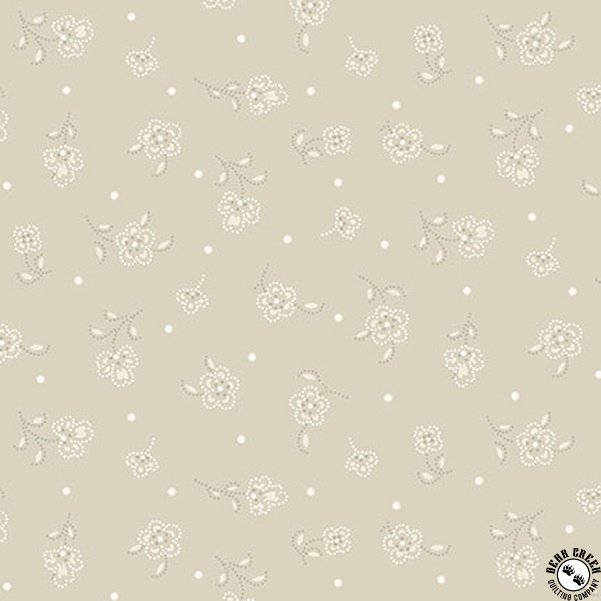 Daybreak  features intricate paisley patterns in a serene blend of soft cool grays and warm taupes, creating a delicate balance of warm and cool neutrals. The designs evoke the peaceful feeling of spending a quiet day in a shady spot with soft breezes and a good booklight, airy, and tranquil. The intricate patterns, combined with earthy soothing colors, bring a gentle elegance to any sewing project, whether for a lap quilt to relax under or a calming home accessory.