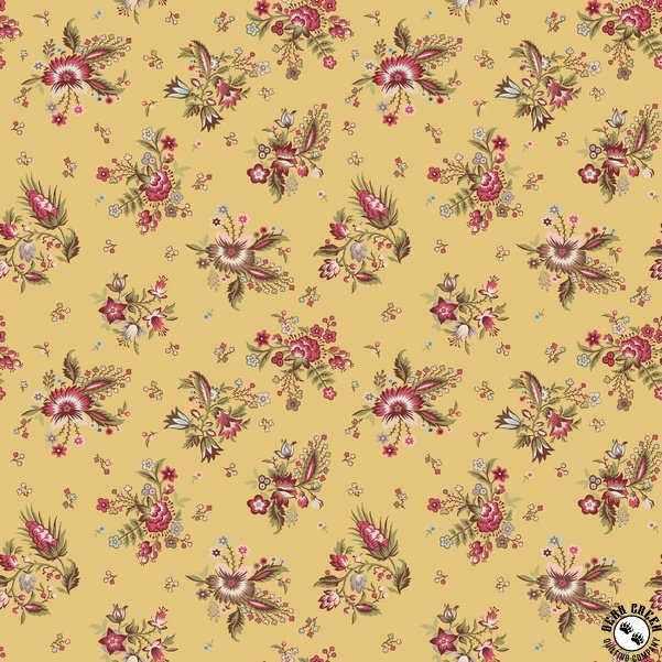 Step into the heart of a French flower market and experience the timeless beauty of Jera Brandvig’s French Market  fabric collection.  Inspired by the vibrant flower markets of Nice, France, and antique French fabrics, this collection features intricately printed florals and foliage that embody French charm and style.  The soft color palette—shades of red, pink, golden yellow, and blue-green—enhances the collection’s effortless elegance.