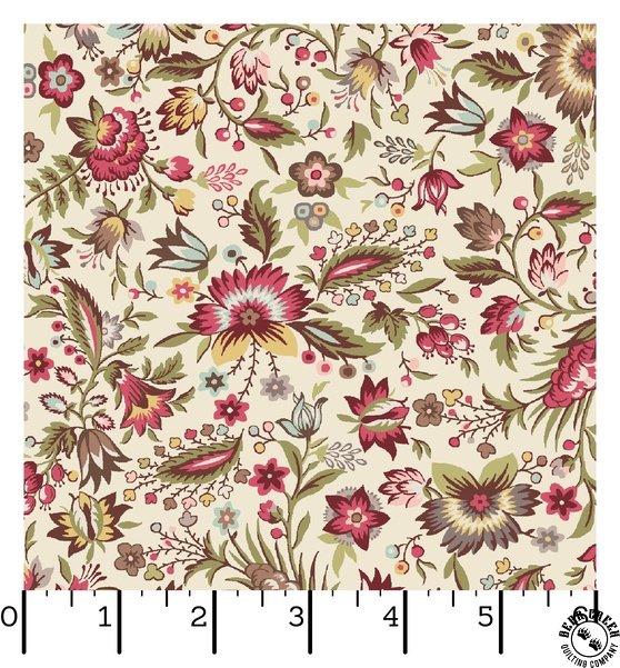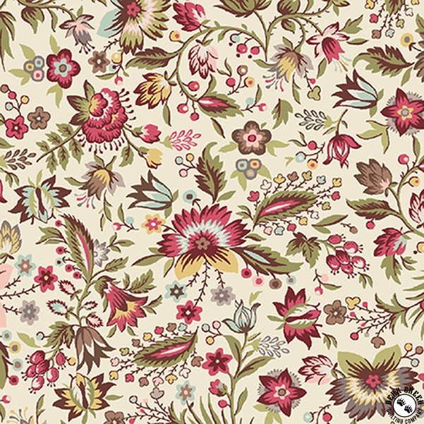 Step into the heart of a French flower market and experience the timeless beauty of Jera Brandvig’s French Market  fabric collection.  Inspired by the vibrant flower markets of Nice, France, and antique French fabrics, this collection features intricately printed florals and foliage that embody French charm and style.  The soft color palette—shades of red, pink, golden yellow, and blue-green—enhances the collection’s effortless elegance.