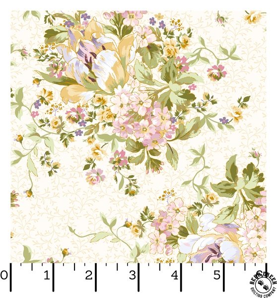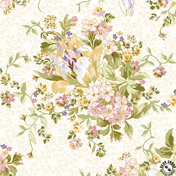 Step into the exquisite world of Grand Entrance,  where timeless charm and refined elegance come together. Graceful pastel hues, accented by delicate gold metallic touches, evoke the charm of hand-painted porcelain, enameled jewelry, and Baroque paintings. Transform your next quilt into a masterpiece with the opulence of the Grand Entrance  fabric collection.
