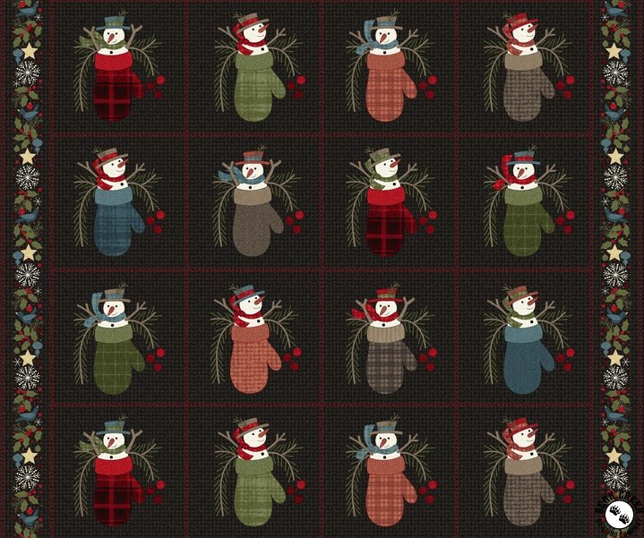 Maywood Studio Holly Jolly Flannel Snowmen Blocks Black