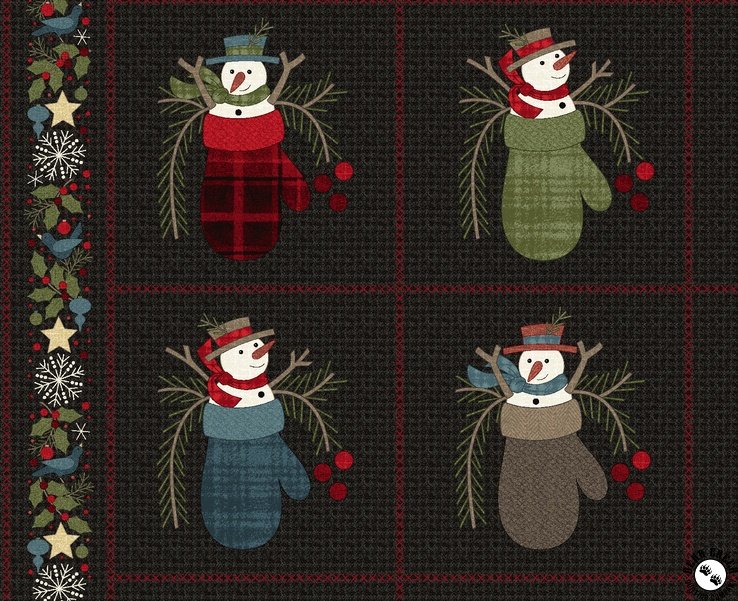 Holly Jolly Flannel  by Bonnie Sullivan for Maywood Studio is here to help you ring in the holiday season with warmth and charm!  This festive fabric collection features a large-scale panel with two delightful winter scenes—perfect for easy gift-making and holiday decor.  Running yardage of cheerful snowmen tucked inside cozy mittens makes an ideal quilt centerpiece, while scattered snowflakes and classic plaid blenders add a snug, seasonal touch to borders and blocks.  Celebrate Christmas in true Holly Jolly  style—with flannel that’s as festive as it is cozy!