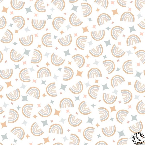 Honey Bunny offers a soothing palette designed for all the wee dreamers, with gentle greys, soft peaches, and delicate whites. Playful scenes of rainbows and hot air balloons capture the magic of childhood adventures, while floppy ears and fluffy clouds add a whimsical charm. Perfect for stitching sweet nursery quilts and heartfelt baby gifts, Honey Bunny invites you to create cozy, handmade treasures for the littlest ones in your life.