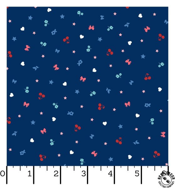 Celebrate the charm of summer with Star Spangled Beauty  by Kimberbell!  This delightful collection combines classic red, blue, and cream florals with soft aqua and pink bows, adding a sweet, nostalgic touch to your seasonal sewing projects.