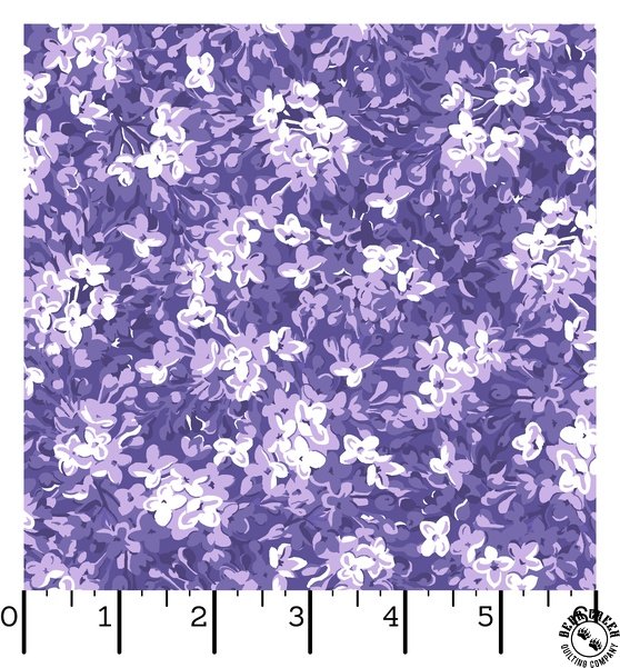 Lilac Lane  brings together the soft beauty of lilacs in gentle purples, lavenders, and delicate greens, evoking a sense of calm and renewal.  With traditional packed floral patterns and subtle basket weave textures, this collection captures the timeless charm of classic garden bouquets.  Perfect for creating fresh patchwork quilts, table runners, and other home accessories, Lilac Lane  brings a timeless elegance to your sewing projects.