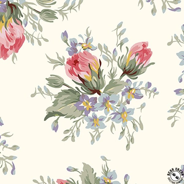 Marlowe captures the charm of vintage florals with bold, large-scale blooms and a rich palette of red, soft gray, black, and cream. The fabric collection features coordinating prints that blend delicate lace-like motifs with striking geometrics, complemented by lush packed florals and scattered bouquets. With its timeless designs and subtly retro hues, Marlowe brings a fresh, sophisticated touch to quilts, table runners, and handmade accessories.