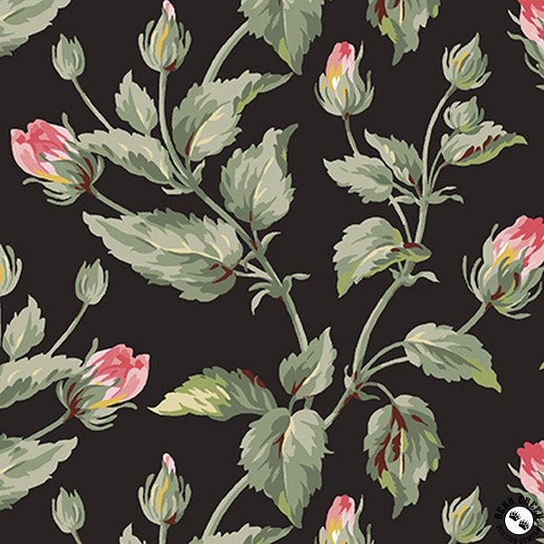 Marlowe  captures the charm of vintage florals with bold, large-scale blooms and a rich palette of red, soft gray, black, and cream.  The fabric collection features coordinating prints that blend delicate lace-like motifs with striking geometrics, complemented by lush packed florals and scattered bouquets.  With its timeless designs and subtly retro hues, Marlowe  brings a fresh, sophisticated touch to quilts, table runners, and handmade accessories.