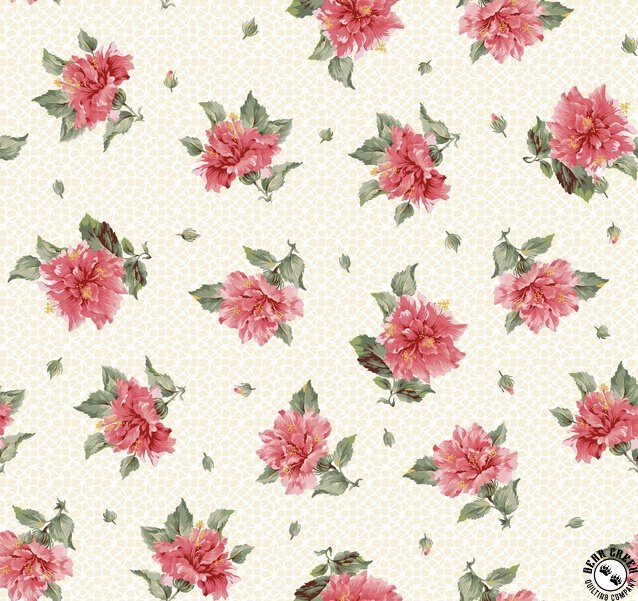 Marlowe captures the charm of vintage florals with bold, large-scale blooms and a rich palette of red, soft gray, black, and cream. The fabric collection features coordinating prints that blend delicate lace-like motifs with striking geometrics, complemented by lush packed florals and scattered bouquets. With its timeless designs and subtly retro hues, Marlowe brings a fresh, sophisticated touch to quilts, table runners, and handmade accessories.