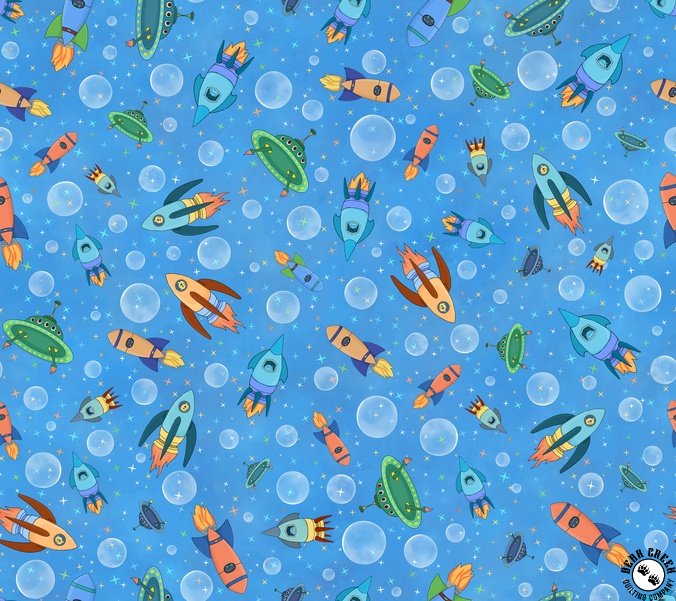 Blast off into creativity with Space Monsters,  a playful new collection that invites little explorers on a cosmic adventure!  Friendly monsters, rocket ships, and twinkling stars fill the skies in these whimsical prints—complete with fun word designs, tonal bubbles, and a vibrant panel that brings the universe to life.  Perfect for bright, imaginative quilts and space-themed gifts, Space Monsters  is ideal for sewing cozy, out-of-this-world projects for toddlers ready to launch into their next big adventure.