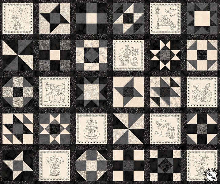 Robin Kingsley puts a Halloween twist on her beloved redwork style in Spooky Stitches. This charming collection features pumpkins, black cats, bats, and haunted houses—all printed in rich tones of charcoal, orange, and cream. With ready-to-use block panels and running yardage, it’s never been easier to whip up festive projects like trick-or-treat bags, pillows, or a set of decorative pennants. Whether you're decorating for the season or crafting handmade Halloween gifts, Spooky Stitches adds just the right touch of whimsy and fright!