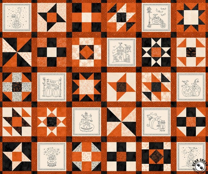 Robin Kingsley puts a Halloween twist on her beloved redwork style in Spooky Stitches. This charming collection features pumpkins, black cats, bats, and haunted houses—all printed in rich tones of charcoal, orange, and cream. With ready-to-use block panels and running yardage, it’s never been easier to whip up festive projects like trick-or-treat bags, pillows, or a set of decorative pennants. Whether you're decorating for the season or crafting handmade Halloween gifts, Spooky Stitches adds just the right touch of whimsy and fright!