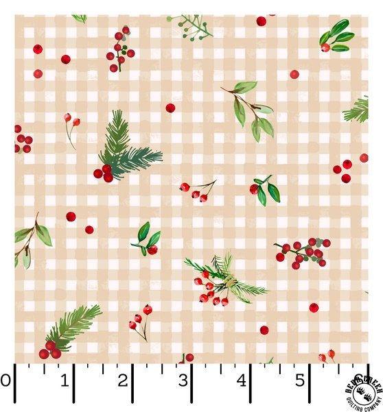 Maywood Studio Winter Wreaths Gingham Greens Cream